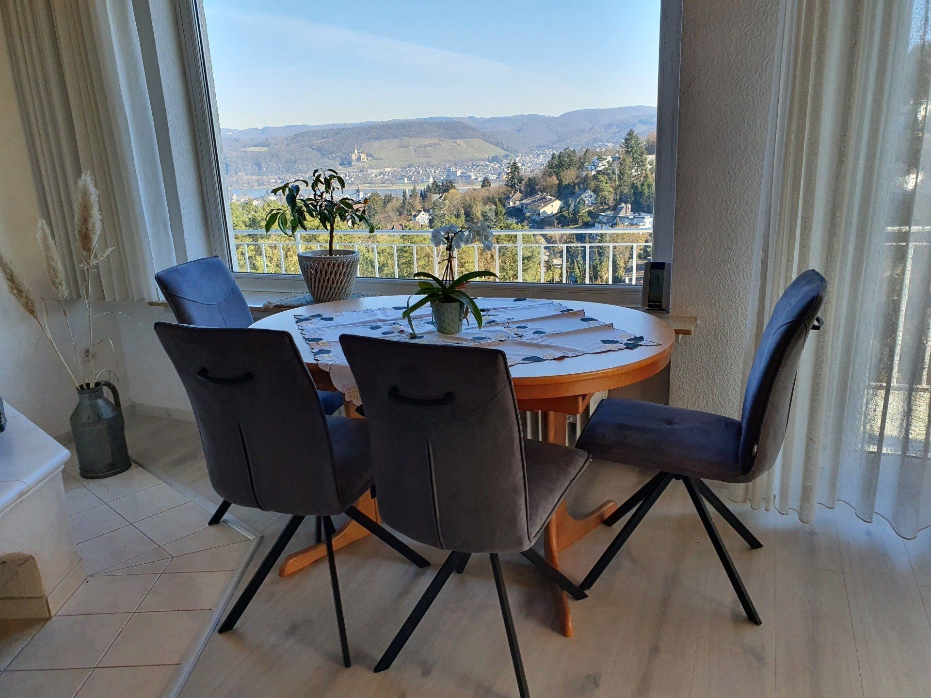 Unsere Ferienwohnung liegt oberhalb von Bad Breisig, mit wunderschönem Blick auf die Stadt sowie Schloss Arenfels in Bad Hönningen und die Höhen des Rheintals. Sie ist ebenerdig zu erreichen, 100 qm groß und bietet für max. 5 Personen Platz.